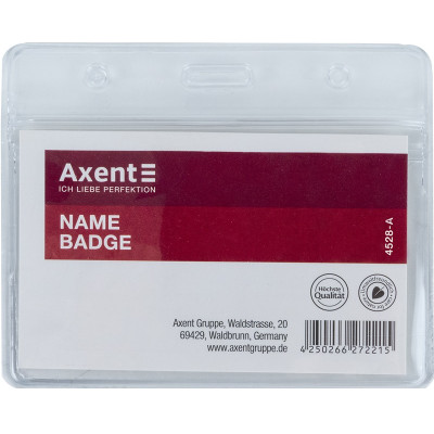 Бейдж горизонтальний ТМ Axent є невід'ємною частиною ідентифікації на різноманітних заходах, включаючи конференції, наради, тренінги та роботу з великою кількістю людей.