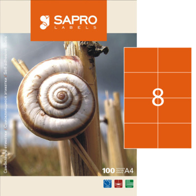 Етикетки клейкі, 8шт/А4, 105х74.2мм, 100арк/уп, TM SAPRO Labels