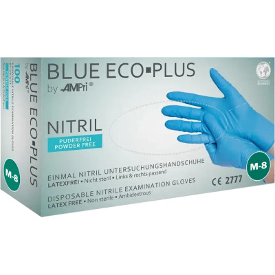 Нітрилові рукавички BLUE ECO-PLUS, розмір M-8, забезпечують високий рівень захисту та комфорт під час використання.