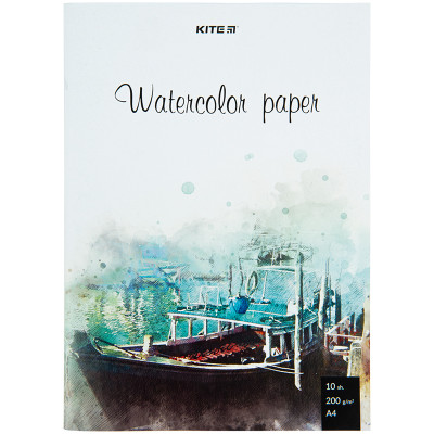 Папір для акварелі, А4, 10арк, 200г/м2, TM Kite