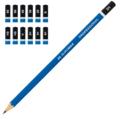 Набір олівців графітових, 6B-4H, корпус синій, без гумки, 12шт/уп, Professional, TM Buromax