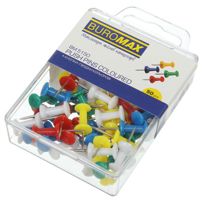 Кнопки-цвяшки, кольорові, в контейнері, 50шт, TM Buromax