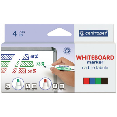 У наборі містяться чотири маркери різних кольорів: червоний, синій, чорний та зелений.