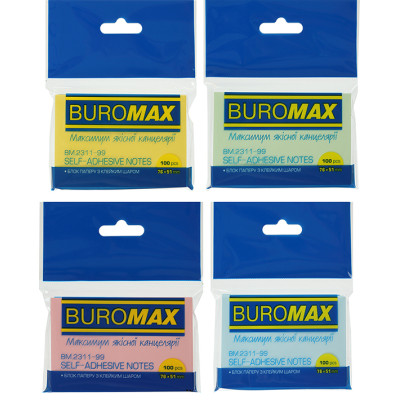 Блок паперу для нотаток клейкий, 51х76мм, 100арк, асорті, TM Buromax