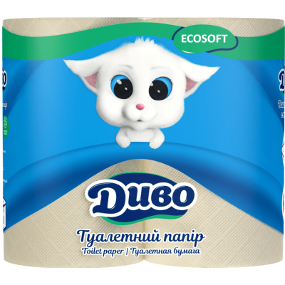 Туалетний папір, 2-шаровий, макулатурний (сірий), на гільзі, 4рул/уп, EcoSoft, ТМ Диво