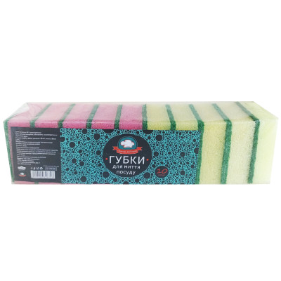 Упаковка містить 10 губок, кожна з яких має оптимальний розмір 75х48х30мм, що робить їх зручними у використанні.