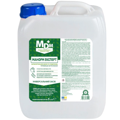 Манорм Експерт — високоефективний дезінфекційний засіб на основі 70% етилового спирту та 0,11% четвертинних амонієвих